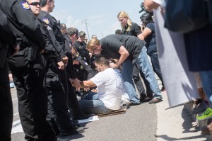 September 05, 2014 – Protesters gather in front of McDonald’s restaurant on 24th St. and Van Buren in Phoenix, Ariz. Four protesters were arrested while non-violently protesting in the street Thursday afternoon. Photo by Deanna Dent