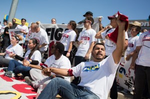 September 05, 2014 – Protesters gather in front of McDonald’s restaurant on 24th St. and Van Buren in Phoenix, Ariz. Four protesters were arrested while non-violently protesting in the street Thursday afternoon. Photo by Deanna Dent