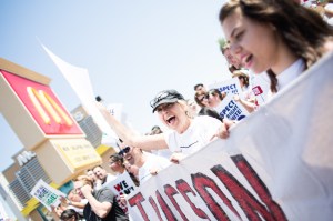 September 05, 2014 – Protesters gather in front of McDonald’s restaurant on 24th St. and Van Buren in Phoenix, Ariz. Four protesters were arrested while non-violently protesting in the street Thursday afternoon. Photo by Deanna Dent