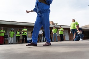 10152014 – Our Walmart protestors began by staging an action at the Walmart on 3721 E. Thomas Road in Phoenix, Ariz. Wednesday afternoon. Protestors asked for petition signatures and thanked employees for their work inside the store before heading to the home of Robert Walton, chairman of Walmart’s board of directors, in Paradise Valley, Ariz. Protestors held a demonstration and delivered the petition to the home of the chairman. Photo by Deanna Dent