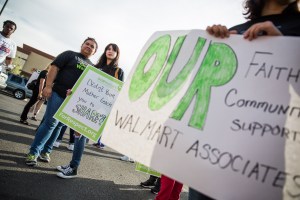 10152014 – Our Walmart protestors began by staging an action at the Walmart on 3721 E. Thomas Road in Phoenix, Ariz. Wednesday afternoon. Protestors asked for petition signatures and thanked employees for their work inside the store before heading to the home of Robert Walton, chairman of Walmart’s board of directors, in Paradise Valley, Ariz. Protestors held a demonstration and delivered the petition to the home of the chairman. Photo by Deanna Dent