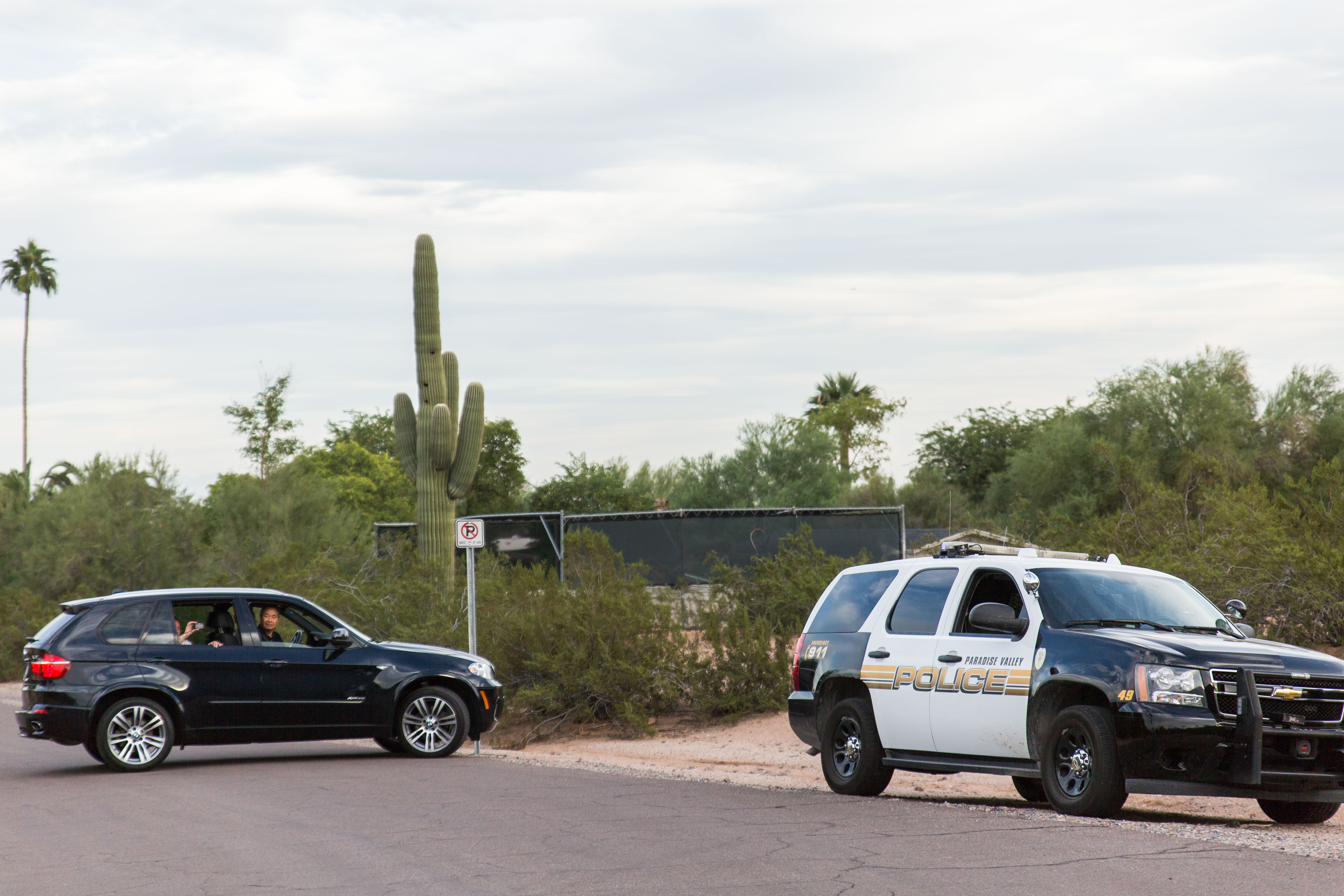 10152014 – Our Walmart protestors began by staging an action at the Walmart on 3721 E. Thomas Road in Phoenix, Ariz. Wednesday afternoon. Protestors asked for petition signatures and thanked employees for their work inside the store before heading to the home of Robert Walton, chairman of Walmart’s board of directors, in Paradise Valley, Ariz. Protestors held a demonstration and delivered the petition to the home of the chairman. Photo by Deanna Dent