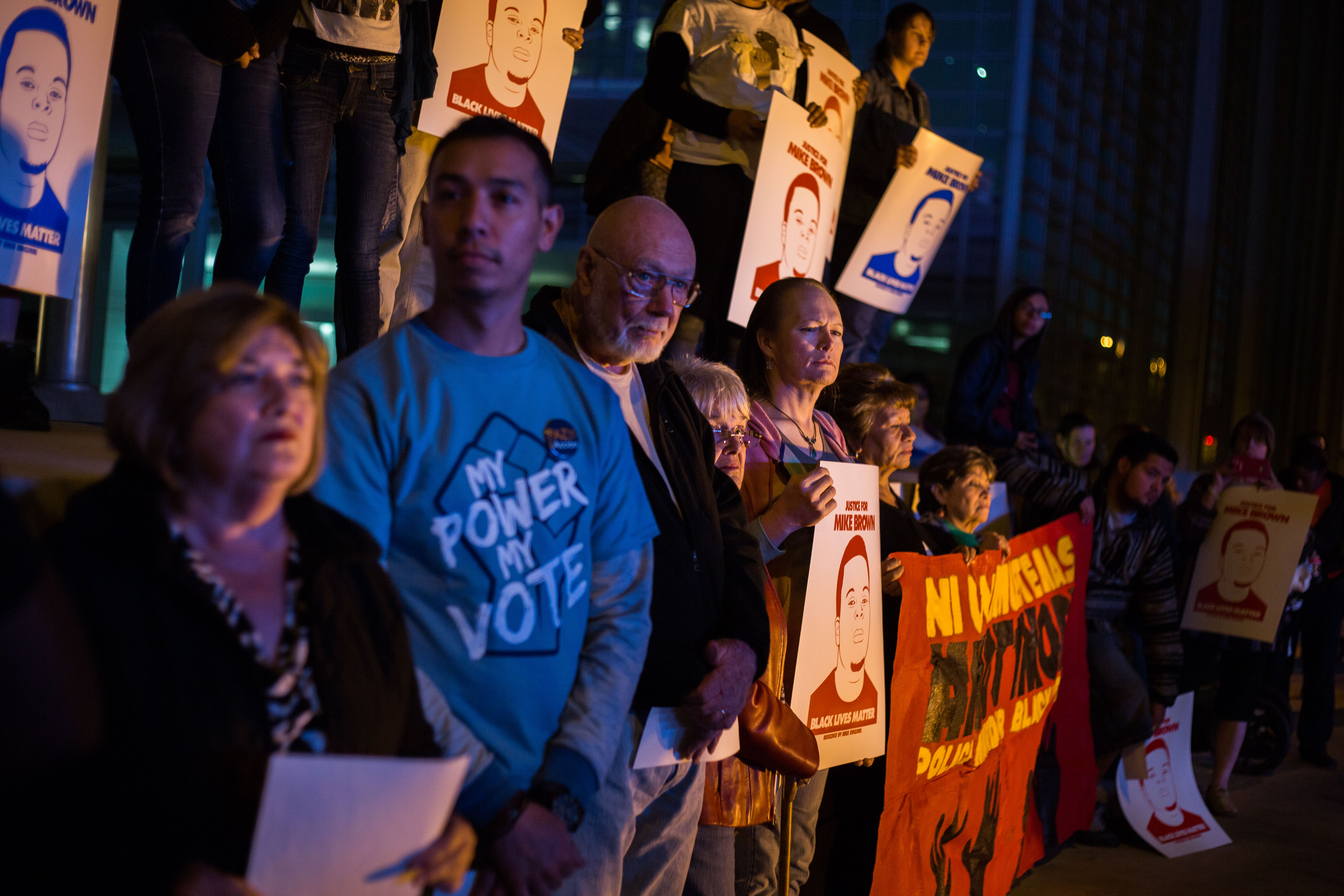 11252014 – Residents of Phoenix protested the failure of the grand jury to indict Officer Darren Wilson in the murder of Michael Brown outside the Sandra Day Oconnor U.S. Courthouse Tuesday evening. Photo by Deanna Dent
