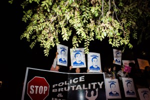 11252014 – Residents of Phoenix protested the failure of the grand jury to indict Officer Darren Wilson in the murder of Michael Brown outside the Sandra Day Oconnor U.S. Courthouse Tuesday evening. Photo by Deanna Dent