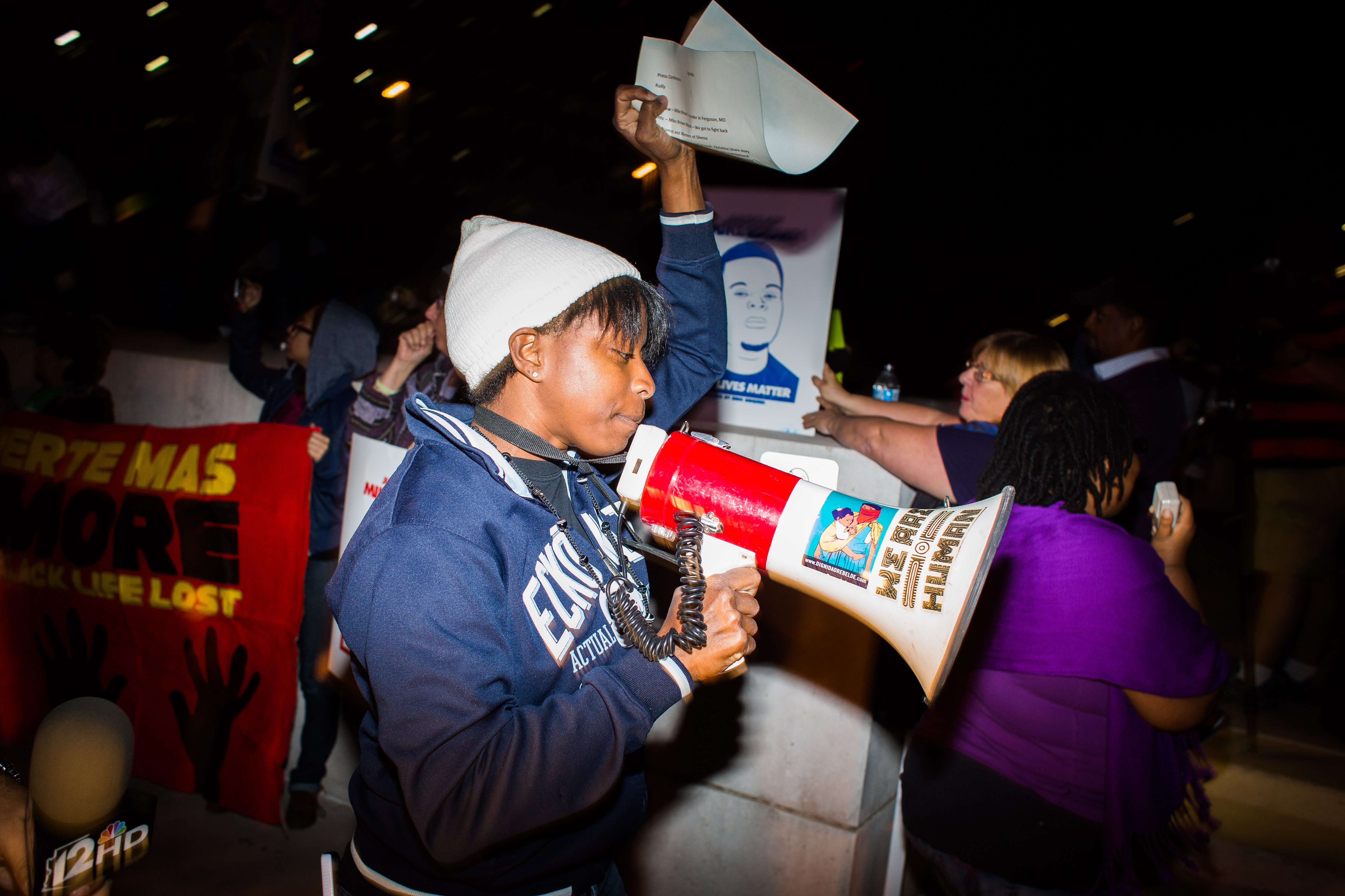11252014 – Residents of Phoenix protested the failure of the grand jury to indict Officer Darren Wilson in the murder of Michael Brown outside the Sandra Day Oconnor U.S. Courthouse Tuesday evening. Photo by Deanna Dent