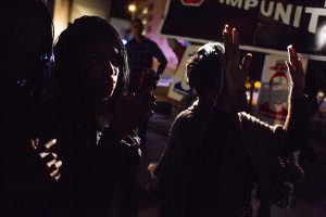 11252014 – Residents of Phoenix protested the failure of the grand jury to indict Officer Darren Wilson in the murder of Michael Brown outside the Sandra Day Oconnor U.S. Courthouse Tuesday evening. Photo by Deanna Dent