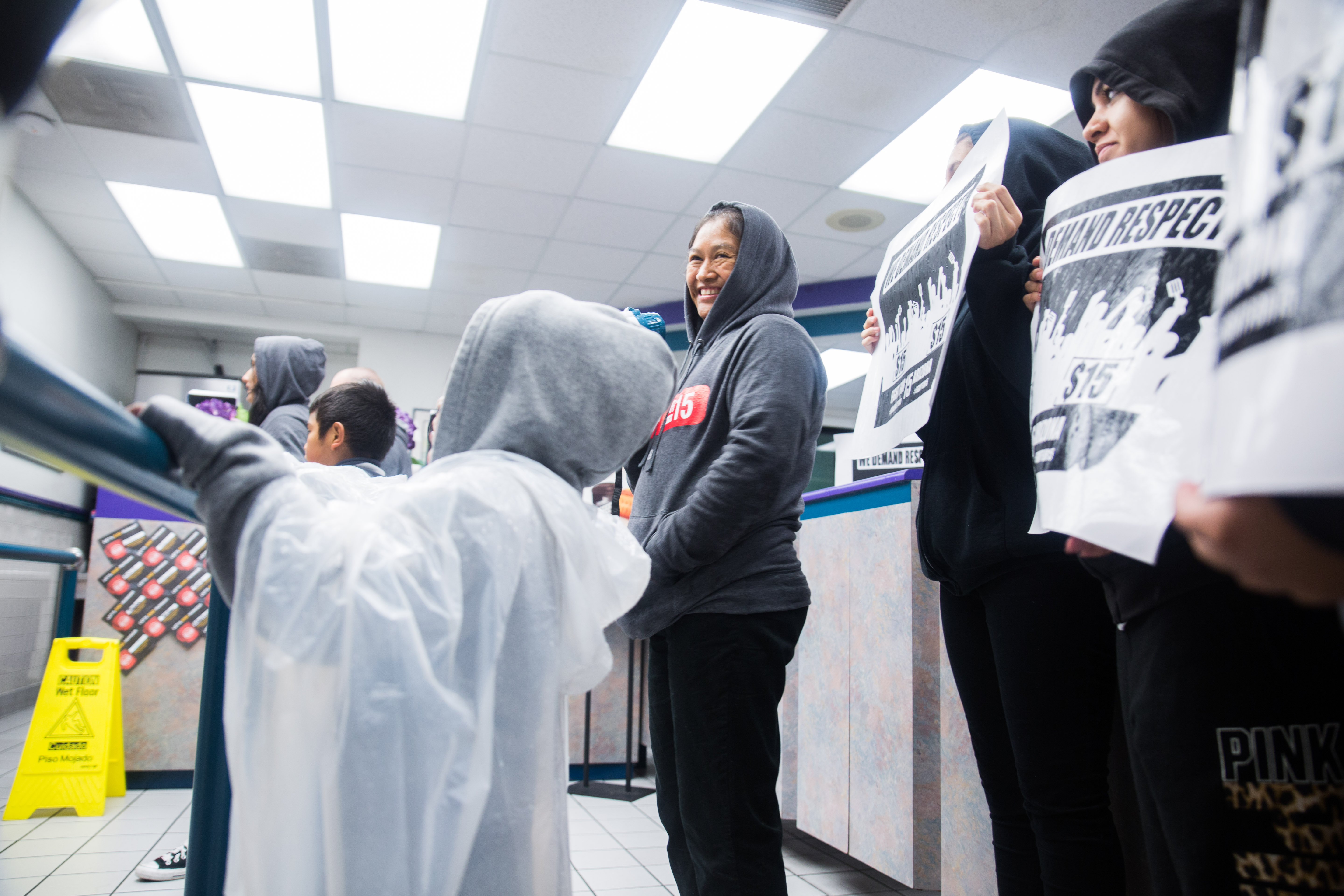 12/4/2014 – Fight for $15 protestors march on a campaign for higher wages at fast food restaurants at Thomas and 44th Street in Phoenix, Ariz. Photo by Deanna Dent