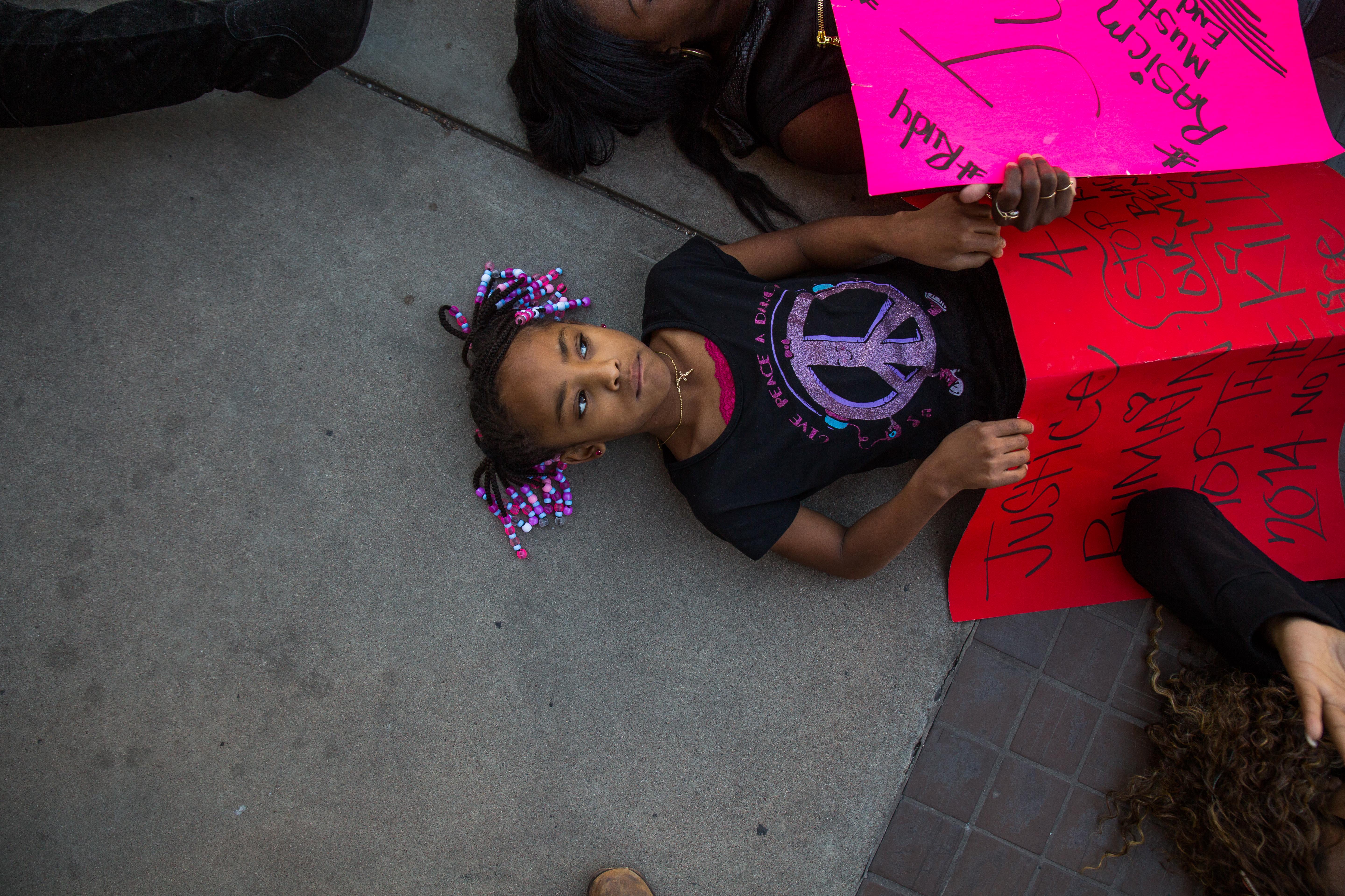20141220 – Protestors marched and held die-ins throughout Phoenix Saturday afternoon in protest of shootings and lack of indictments throughout the previous months focusing on Phoenix cases of Rumain Brisbon, Michelle Cusseaux and Salvador Reza. Photo by Deanna Dent