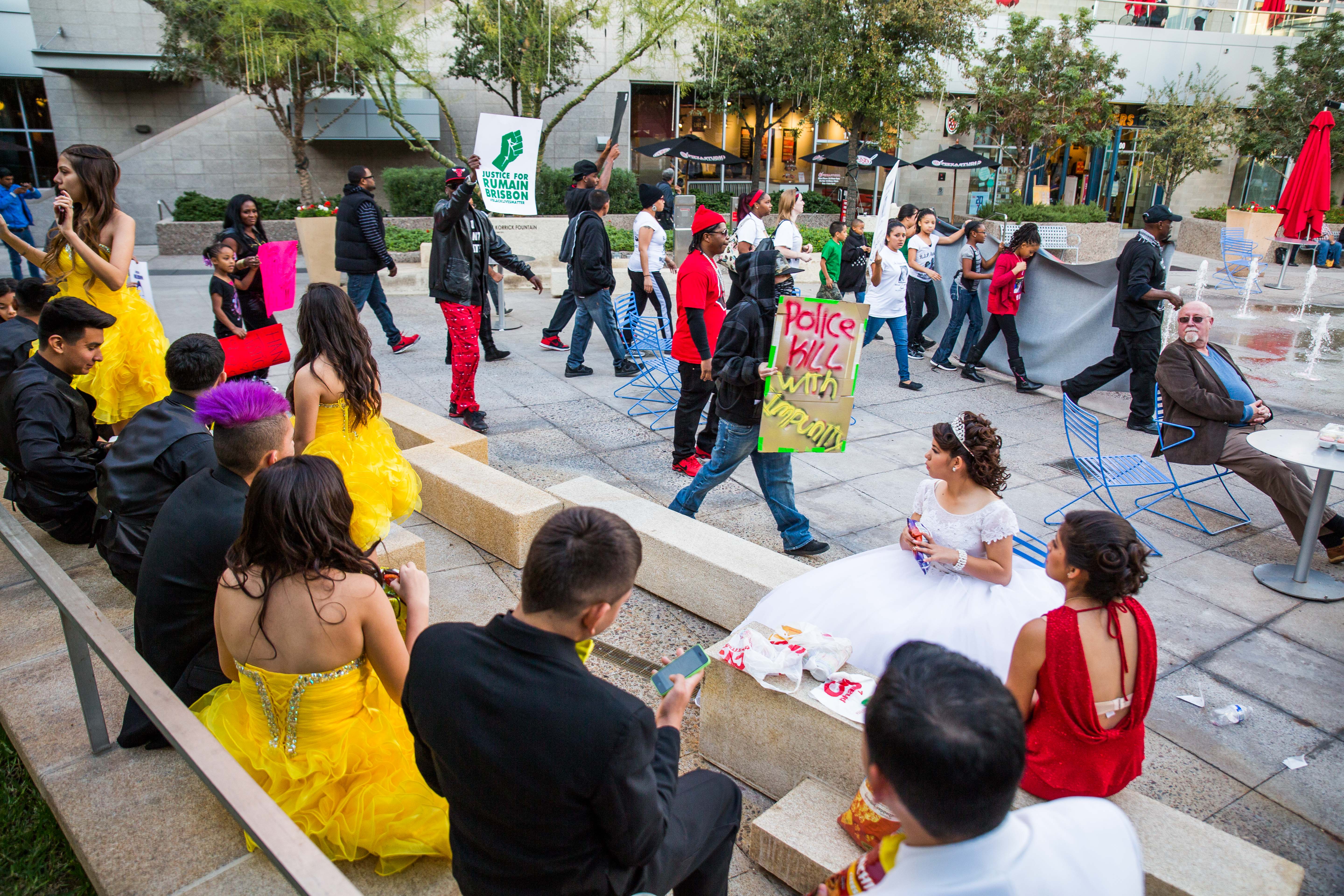 20141220 – Protestors marched and held die-ins throughout Phoenix Saturday afternoon in protest of shootings and lack of indictments throughout the previous months focusing on Phoenix cases of Rumain Brisbon, Michelle Cusseaux and Salvador Reza. Photo by Deanna Dent