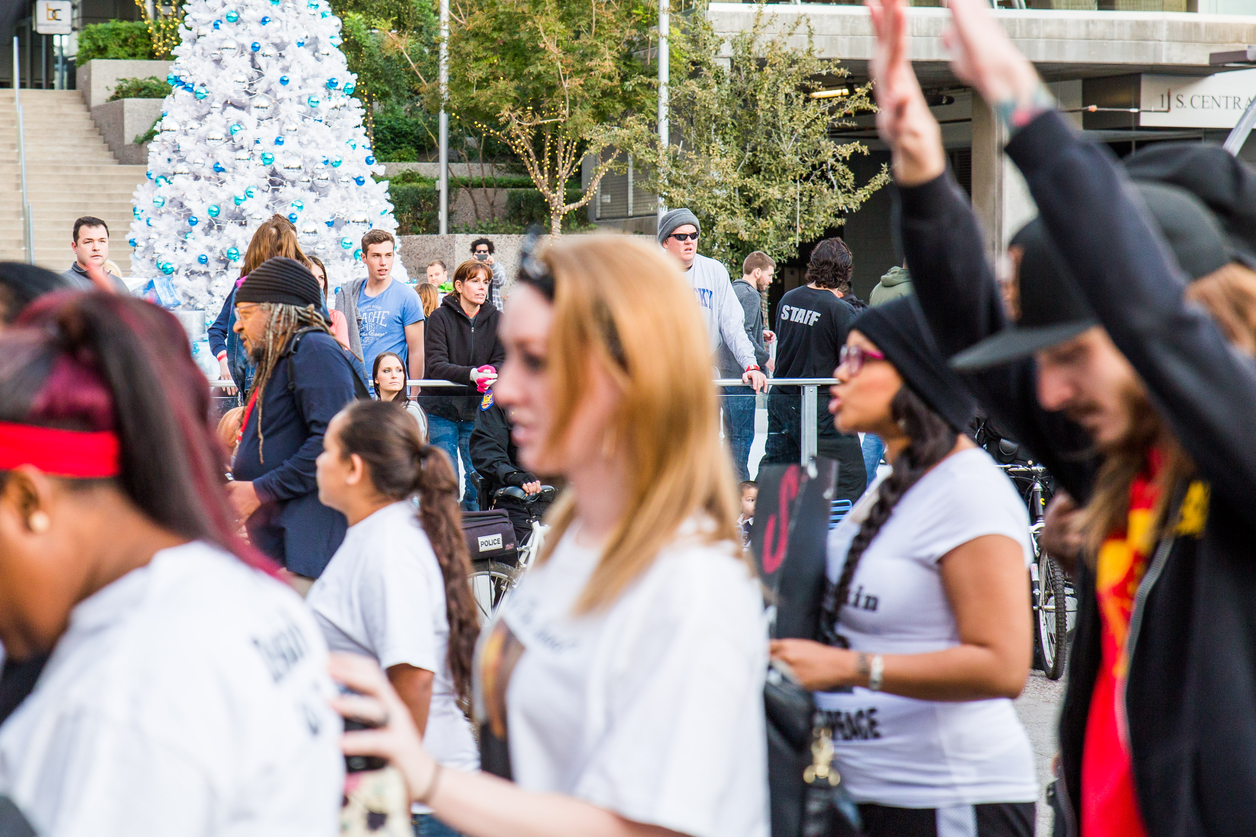 20141220 – Protestors marched and held die-ins throughout Phoenix Saturday afternoon in protest of shootings and lack of indictments throughout the previous months focusing on Phoenix cases of Rumain Brisbon, Michelle Cusseaux and Salvador Reza. Photo by Deanna Dent