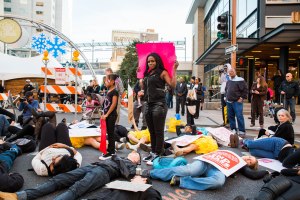 20141220 – Protestors marched and held die-ins throughout Phoenix Saturday afternoon in protest of shootings and lack of indictments throughout the previous months focusing on Phoenix cases of Rumain Brisbon, Michelle Cusseaux and Salvador Reza. Photo by Deanna Dent