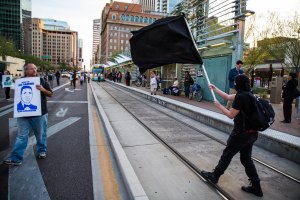 20141220 – Protestors marched and held die-ins throughout Phoenix Saturday afternoon in protest of shootings and lack of indictments throughout the previous months focusing on Phoenix cases of Rumain Brisbon, Michelle Cusseaux and Salvador Reza. Photo by Deanna Dent