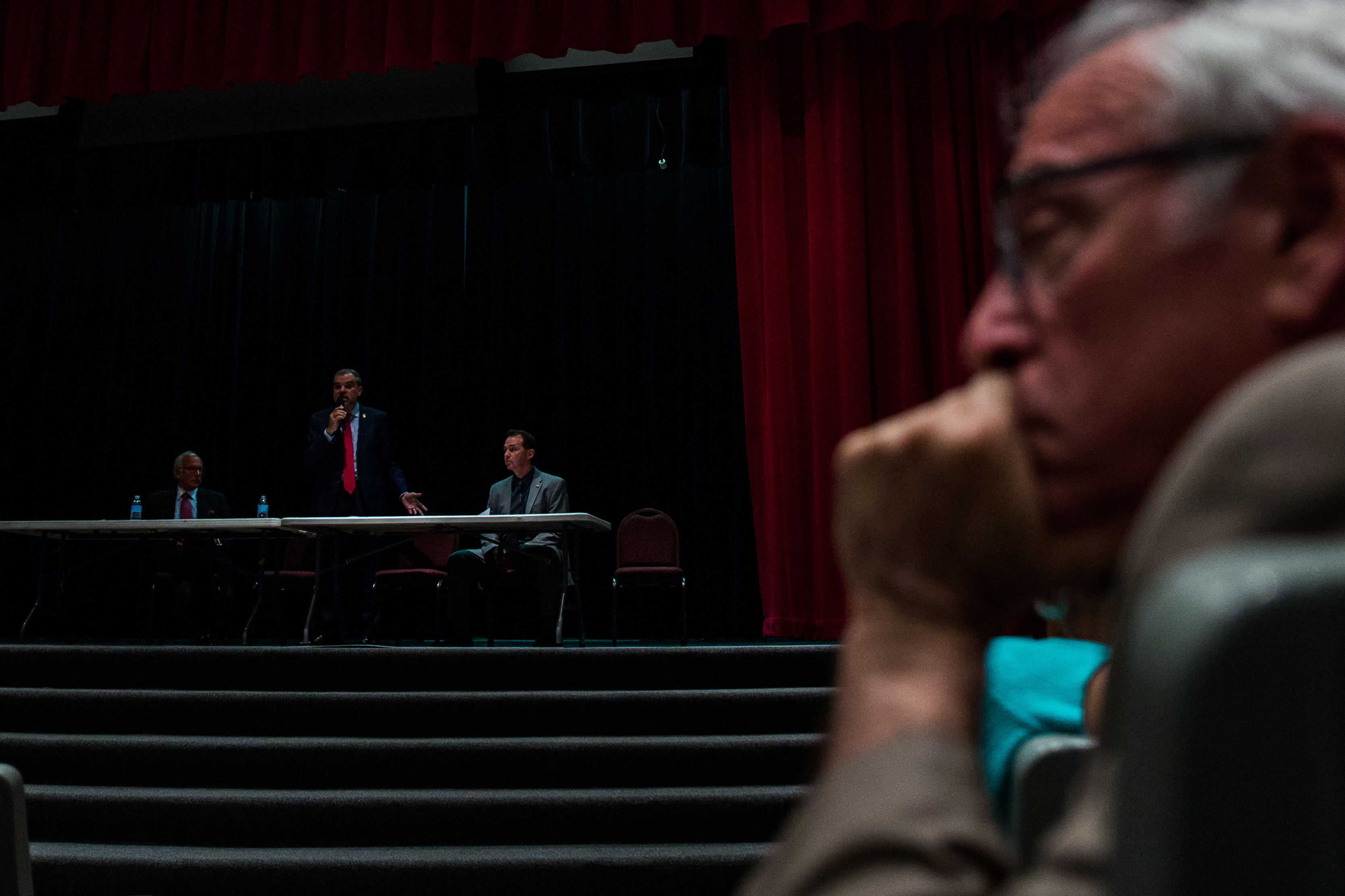 Community members attend a court appointed monitor meeting at ASU prep academy and was attended Maricopa County Sheriff Joe Arpaio Wednesday evening in downtown Phoenix. Community members were invited to give their input on their experiences with MCSO to the court appointed monitor. Photo by Deanna Dent