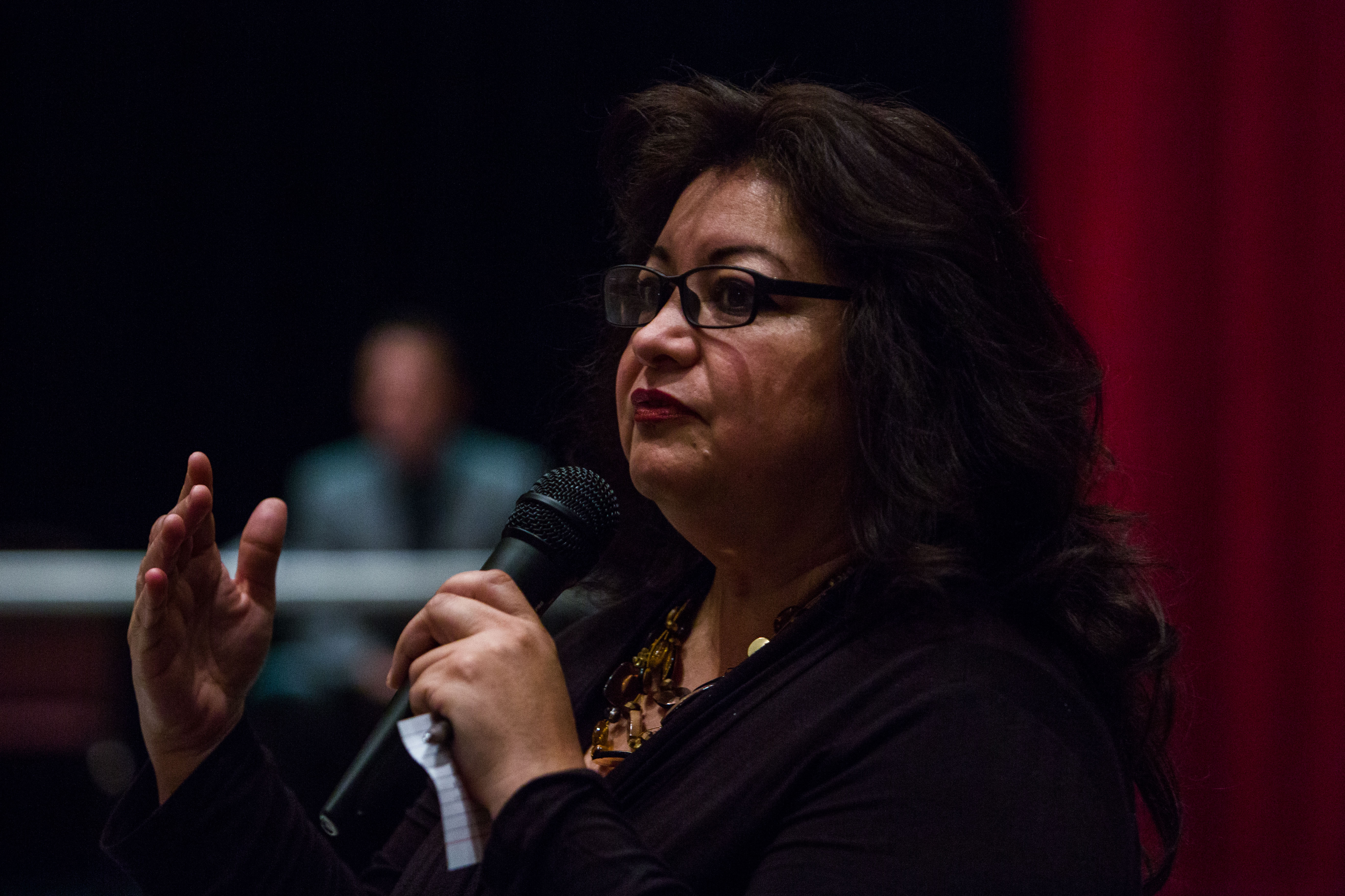 Community members attend a court appointed monitor meeting at ASU prep academy and was attended Maricopa County Sheriff Joe Arpaio Wednesday evening in downtown Phoenix. Community members were invited to give their input on their experiences with MCSO to the court appointed monitor. Photo by Deanna Dent