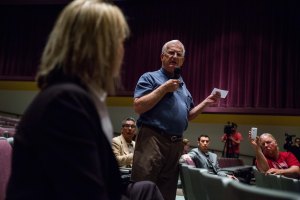 Dr. George Pauk airs his grievances at a court appointed monitor meeting at ASU prep academy and was attended Maricopa County Sheriff Joe Arpaio Wednesday evening in downtown Phoenix. Community members were invited to give their input on their experiences with MCSO to the court appointed monitor. Photo by Deanna Dent