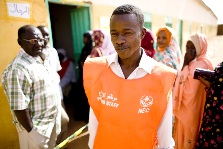 A young physics teacher works at a Kareema polling station on the outskirts of El Obeid, North Kordofan State, Sudan.