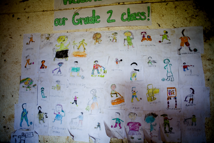 Madam Malichi, grade 3 teacher, gives a literacy test to her 50+ students at the end of term. One of her students, pictured first, is sick with malaria. He slept on the sofa for the whole day waiting to be escorted home by an older brother. Many times children come to school when they are ill with malaria rather than stay at home alone. During term one, rainy season, malaria rates are incredibly high. We lost two school pupils, a grade one student and grade seven student.