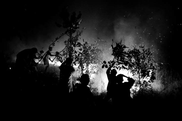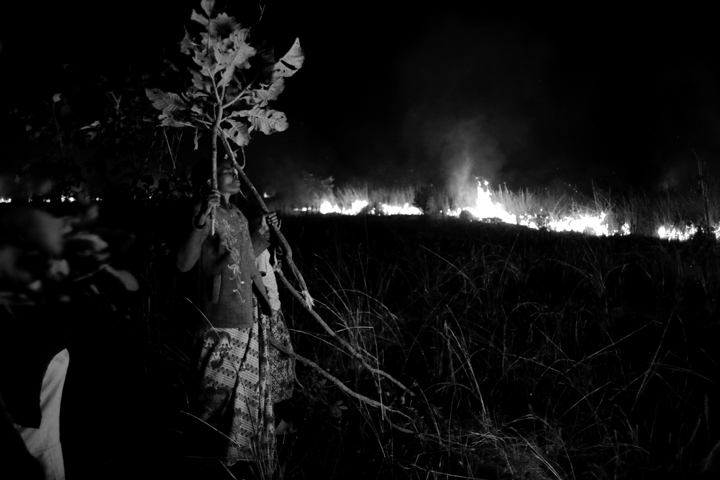 The neighboring children in my area try to put out the flames of a fire headed for my chimbushi, or pit latrine. Burning during cold season and tweluka (lack of relish) season because the children can come the next day and dig the field mice out of the ground to eat. It is also just accepted as part of what happens during this season, each time I ask someone in the village they respond with different reasons for the burning so I can’t say it is just the field mice. The main problem is that when children set the fires, they often burn out of control (like this one) and many fields, banana trees, and even houses can burn to the ground. Worse is that everyone has an idea of who set the fire, but no one would tell you anyway.