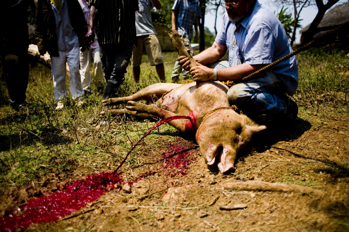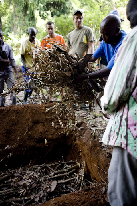 We did a lot of different activities like butchering a pig, skinning a rabbit, composting and much more. These photographs are of the composting demo were we had the community members and peace corps volunteers build a compost pile. The session was taught by Larry Maurin and ended with a tour of Paul’s garden which included strawberries, black berries, comfrey and swiss chard.