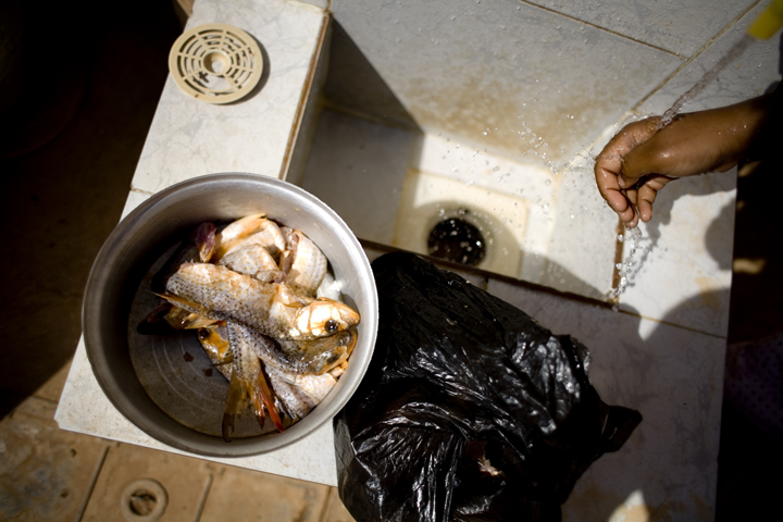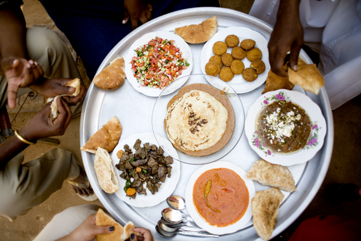 Breakfast at Mugeeb’s house, an SVP worker. Consisting of Tamiya (falafel), salad, ful (beans), bread, kaseik (a fish dish made with tomato, puree fish, and peanut butter with onions and oil), liver, and an okra dish (center) that I couldn’t even guess at the name.